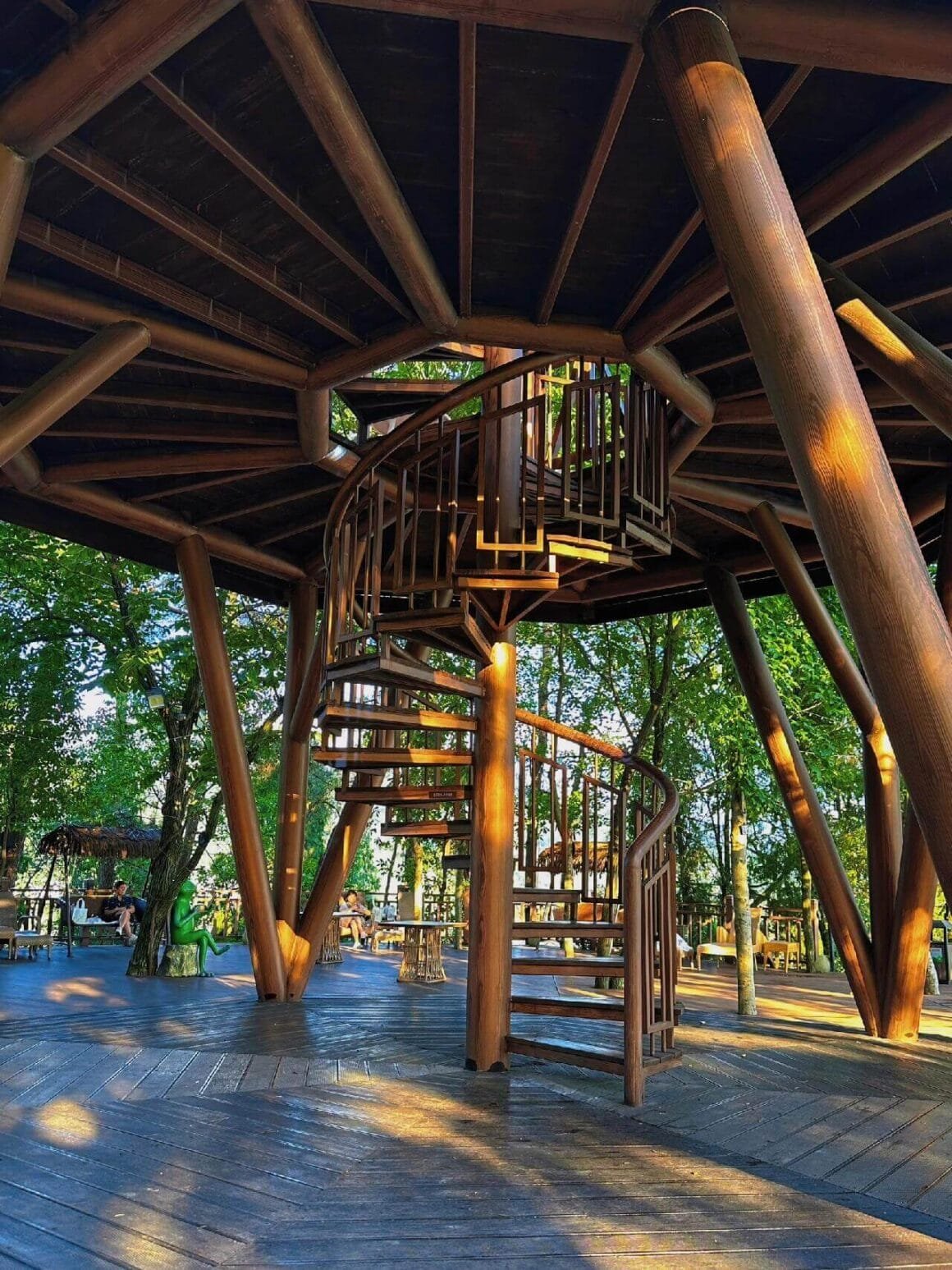 At the foot of Taoist sacred Qiyun Mountain, 25 architectural fantasies dangle like fairy tale relics among pine canopies. Think UFO-shaped pods with retractable skylights for stargazing, hobbit-worthy “Hamburger Houses,” and timber castles with spiral slides. The showstopper? An eight-meter-high “Spaceship Cabin” that glows like an extraterrestrial lantern after dark.