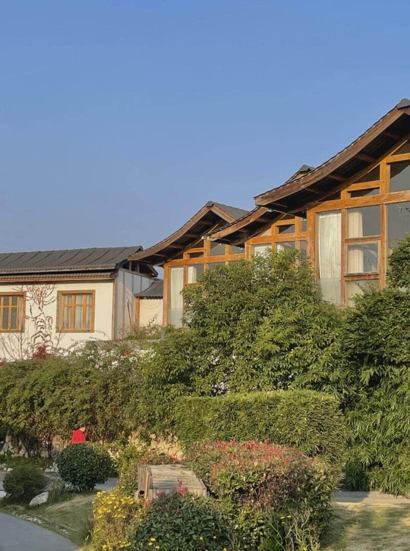Blending Sichuanese, Huizhou, and Hakka styles, the complex features white walls, black tiles, and a circular restaurant inspired by Fujian’s tulou (earthen buildings). Water-centric courtyards and bamboo groves evoke a poetic Jiangnan ambiance.