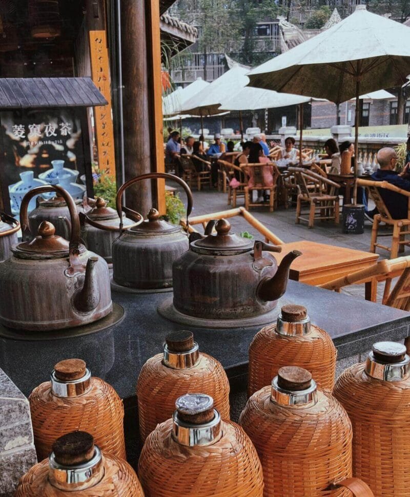 Sip classic jasmine tea(lao san hua) at Lingjiao Tea House, where bamboo chairs, brass kettles, and open – air pavilions preserve Chengdu’s tea – drinking traditions. Weekly Sichuan opera performances at Haha Tea House add a theatrical flourish.