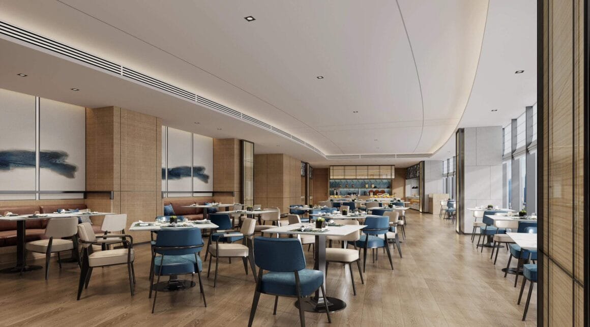 The hotel’s 133 contemporary guest rooms and suites balance minimalist aesthetics with thoughtful functionality. Signature amenities include plush bedding, 55-inch LED TVs, high-speed Wi-Fi, and rain showers. Select River View Rooms frame panoramic vistas of the Qiantang River. Designed for modern nomads, rooms feature ergonomic workstations, adjustable lighting, and versatile charging ports.