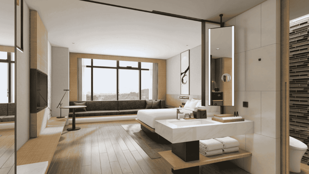 The hotel’s 133 contemporary guest rooms and suites balance minimalist aesthetics with thoughtful functionality. Signature amenities include plush bedding, 55-inch LED TVs, high-speed Wi-Fi, and rain showers. Select River View Rooms frame panoramic vistas of the Qiantang River. Designed for modern nomads, rooms feature ergonomic workstations, adjustable lighting, and versatile charging ports.